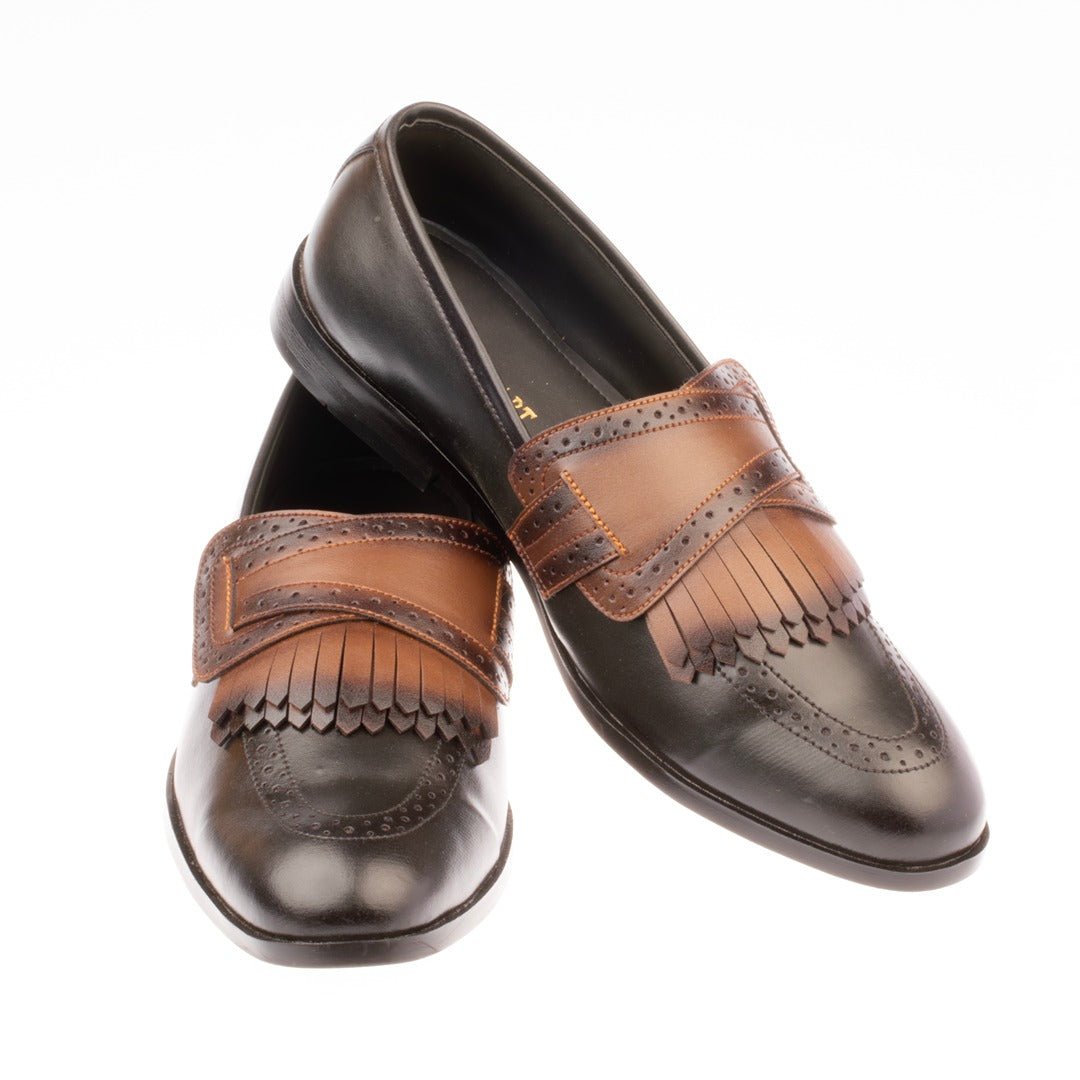 The sole is constructed from high-density Italian TPR, providing exceptional durability and flexibility for all-day wear. What truly sets these loafers apart is the unique fringe pattern in tan leather that beautifully contrasts the black base, adding a distinctive touch of individuality.