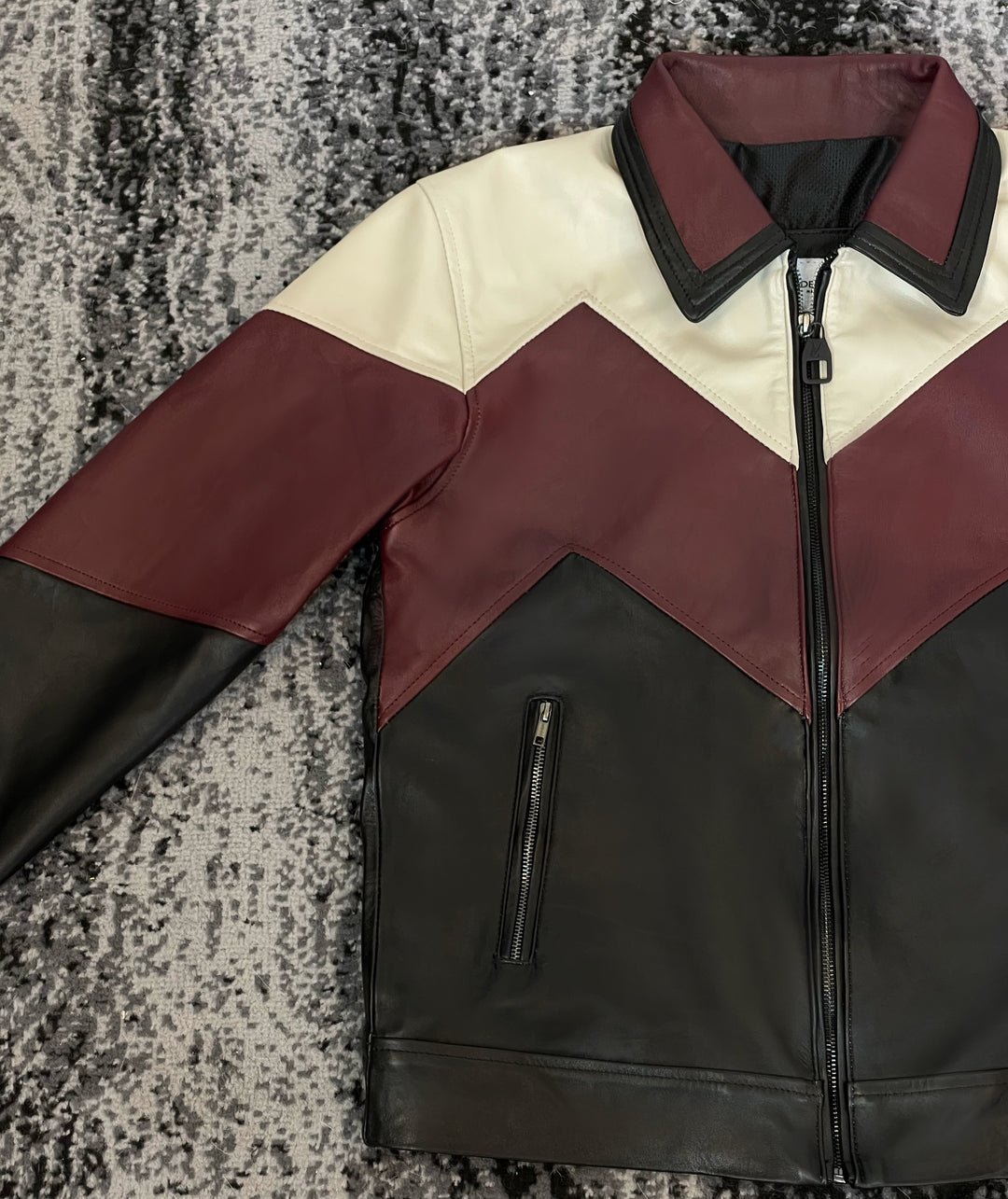 This Leather jacket is Handcrafted from the finest quality soft sheep leather with brown satin lining. It has one zipper pocket that can easily fit a 6.5″ screen phone & other valuables. It has two zipped pockets around the waist of the jacket. Smooth zipper closure & a cuff on sleeves. Beautiful symmetrical pattern work on the jacket.