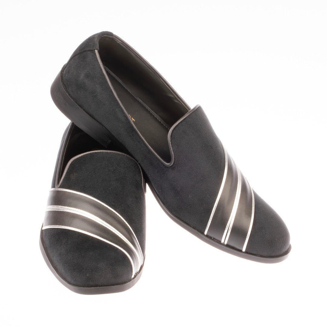 Discover the CultCart Silver Lightning Loafer in rich black suede, where style seamlessly intertwines with comfort and tradition. Redefining footwear artistry, these exceptional ethnic loafers effortlessly fuse elegance and ease.