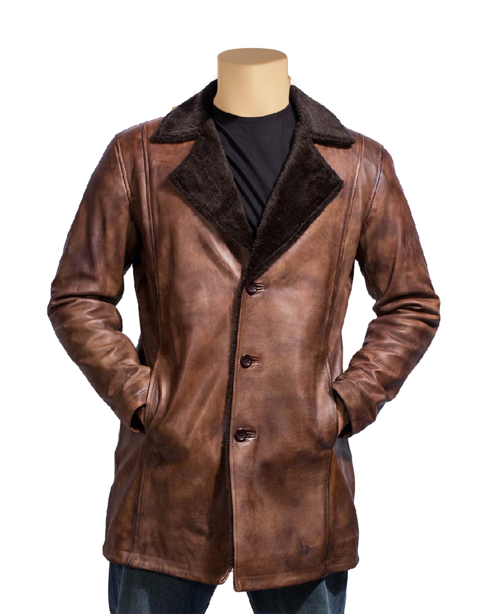 Timeless Sophistication: Men’s Distressed Brown Soft Lamb Leather Coat with Faux Fur Lining – Handcrafted Luxury