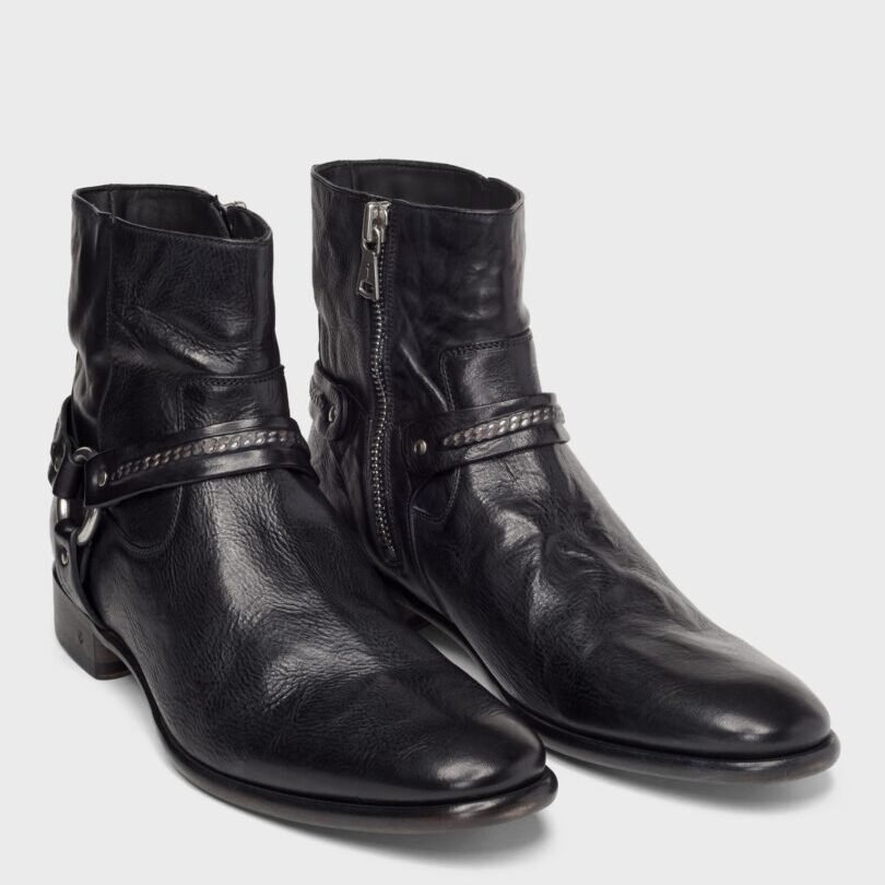 Crafted from hand-burnished and high-grade thick Italian buff leather, these boots exude durability and sophistication. The black color adds a sleek and versatile touch, making them suitable for various occasions. The round toe shape ensures a comfortable fit, allowing for all-day wear.