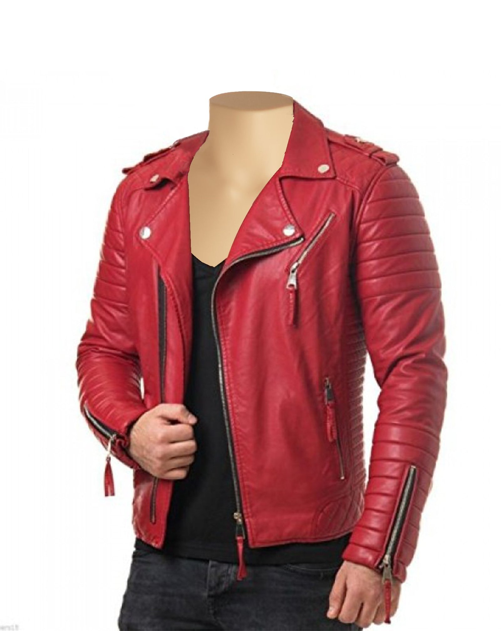 Unleash Your Style: Men’s Red Soft Lamb Handcrafted Motorcycle Biker Leather Jacket – Custom Made Luxury